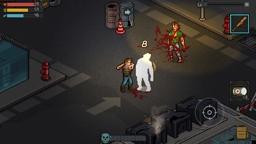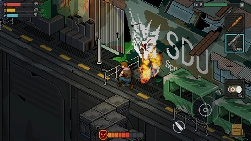 3、以复古像素画面打造,玩家所扮演的主角将会踏上寻找妻儿的道路,用各种各样的武器来生存下去。