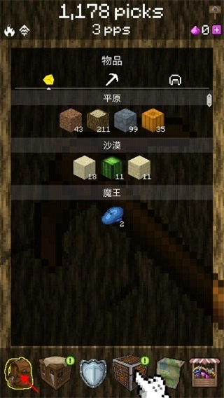 PickCrafter最新中文版是一款像素风点击式挖矿制作游戏。游戏里,玩家扮演高级矿工,通过点击画面,操控手中镐头挖掘关卡中的砖块。在持续挖掘过程中,能获取丰富物资资源,像蓝宝石、砂岩、沙、木头、南瓜等,资源种类超90种。玩家可用这些资源购买更高级的锄头及其他道具,还能升级神器与技能,以此加快挖掘速度。