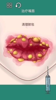4、还有类似的去嘴上脓包,用针筒把这些脓包一个个戳破。