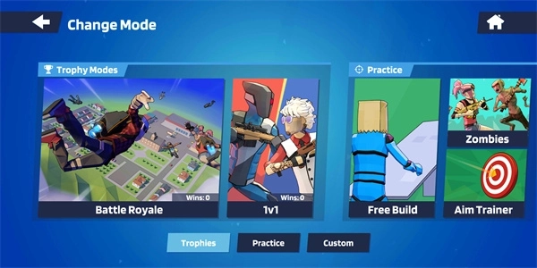2、选择游戏模式,这里我选择Trophles中的单人Battle Royale游戏模式。