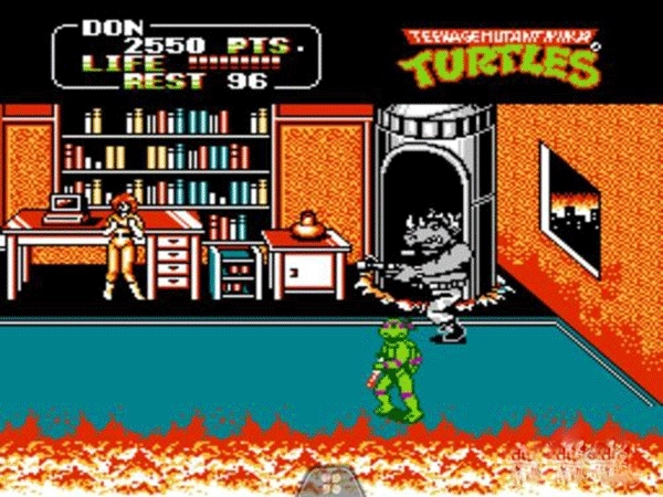 4、进入游戏后,你会发现所有的游戏操作都和红白机上的相同;这对于那些熟悉忍者神龟系列的玩家来说是一个好消息,因为他们可以很快上手并享受游戏的乐趣;