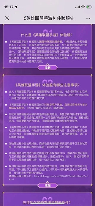 为保障体验服机制的顺利运行,我们希望招募的召唤师和我们一样,拥有一颗热爱英雄联盟手游的初心,是一群愿意共同为手游付出自己努力的召唤师。