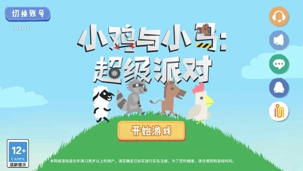 1、打开小鸡与小马超级派对最新版,登录后点击开始游戏;