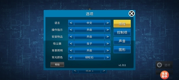 1、打开家居设计游戏,点击右下角选项;