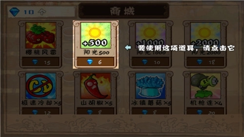 7、选择需要使用的阳光这项道具,因为开局玩家没有阳光也就不能用阳光来购买植物;