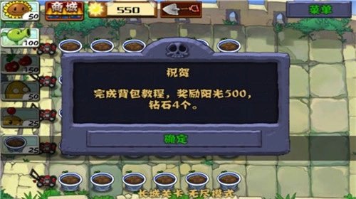 8、完成了背包教程,玩家就获得了阳关和钻石;