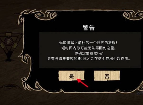 6、摆放好海洋之椅后,点击激活。此时系统会弹出“警告”提示,点击“是”,就能切换到海难地图。需注意,若电脑配置较低,可能出现卡顿情况,且不兼容两种DLC的模组将无法使用。