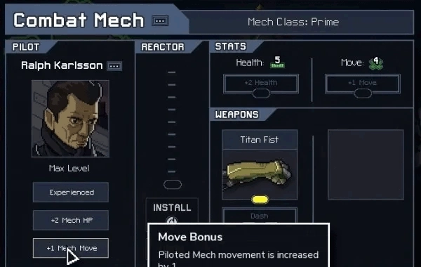 每一台机甲均由一位机师操控,当机师升级时,会自动开启被动技能。每次“战役”重新启动时,你能够挑选一位已解锁一项被动技能的机师。对于新手而言,Abe Isamu是个挺好的选择,因为他能增强机甲的装甲,减少直接攻击所造成的“1点”伤害数值。在游戏前期,Abe的机甲可充当小队里的Tank,吸收怪兽造成的伤害,阻拦其对建筑物进行射击。要是你谋划不足,Isaac Jones会给予你一次额外“重置”(Reset)战斗的机会。此外,高阶机师需要“能力核心”来激发他们的能力,这意味着他们要坚持到战役后期才能发挥作用。最好交由更具经验的玩家来指挥他们。