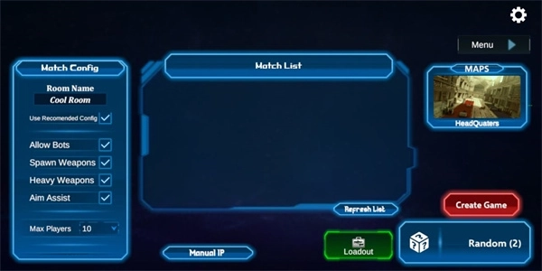 2、左侧可以设置匹配的人数以及武器等;