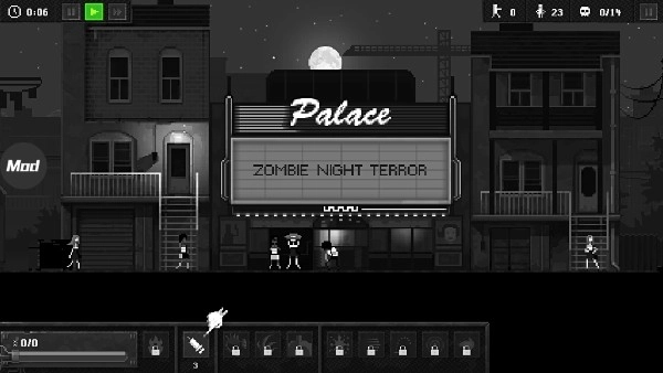 1、这款游戏拥有极其丰富的模式,而且每种模式下又涵盖着众多玩法。现在,我们进入第一个广为人知的感染模式,选择“电影恐怖夜”。在这个关卡里,目标是先感染3个人类,随后再杀掉14个人,达成此条件就算挑战成功。接下来,点击绿色的播放键,开启游戏之旅吧。