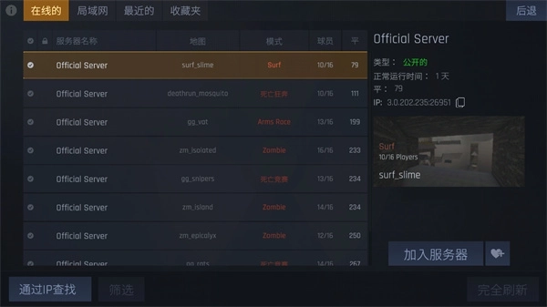 2、这里有3个服务器可供选择,均为联机模式。第一个服务器支持单独开房间,你能够邀请小伙伴一同玩耍;第二个服务器则是让你加入其他已有的联机房间进行游玩。你可依据自身需求做出选择。