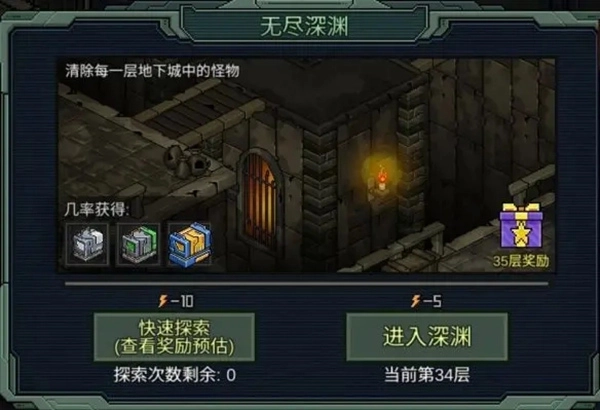 3、无尽深渊。难度不大,只有陷阱对人物有一定威胁,每天挑战完记得还可以扫荡一下;