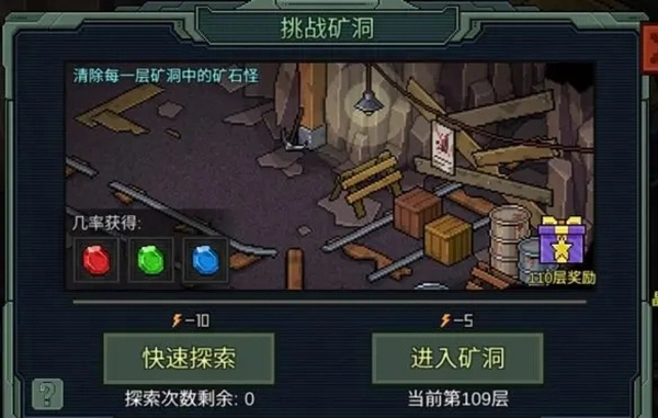 8、挑战矿洞。每天打一次就好,能打多少打多少,不要多打浪费体力,打完扫荡一下,注意这里也可以升级矿机,是宝石的主要来源;