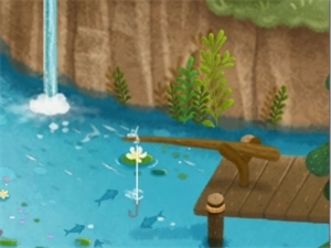2、可以在森林中钓鱼补充食物,给小猫咪来补充营养,带领自己的小猫去拜访其他玩家的小猫。
