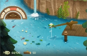 4、长按水中的小鱼,无论是有彩色的鱼还是黑色的阴影都可以,上方会出现一个刻度条。