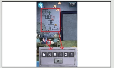 4、点击查看密码锁,进入特写镜头;根据刚才获得的线索进行密码的输入:21223;