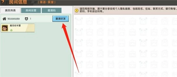 5、在房间信息界面中玩家就可以看到邀请好友的选项了,如图所示。