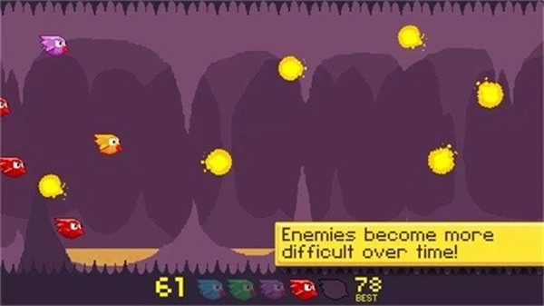 2、在游戏中,玩家需持续点击屏幕,才能使自身保持在屏幕中央。在此过程中,不仅要躲避敌人的追击与尖刺,还得避开自己吐出的火焰球。火焰球一旦触碰到地面,就会触发弹射。