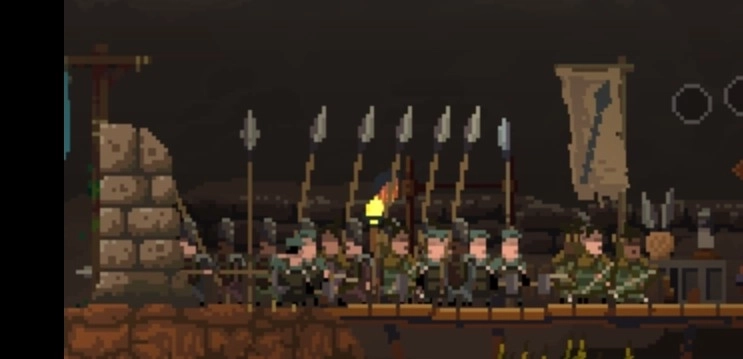 ①防守:夜晚在城墙下对贪婪进行攻击(群体伤害),一堵城墙最多有4个长矛兵,其余的会向后面的防线依次防守。(可以防王冠盗窃者)