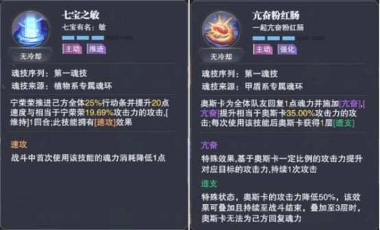 其实游戏中还有一些增伤buff,例如宁荣荣的第一魂技,七宝之敏。拉条的同时还为队友增加输出。奥斯卡的第一魂技,亢奋粉红肠,为队友回复魂力的同时增加伤害