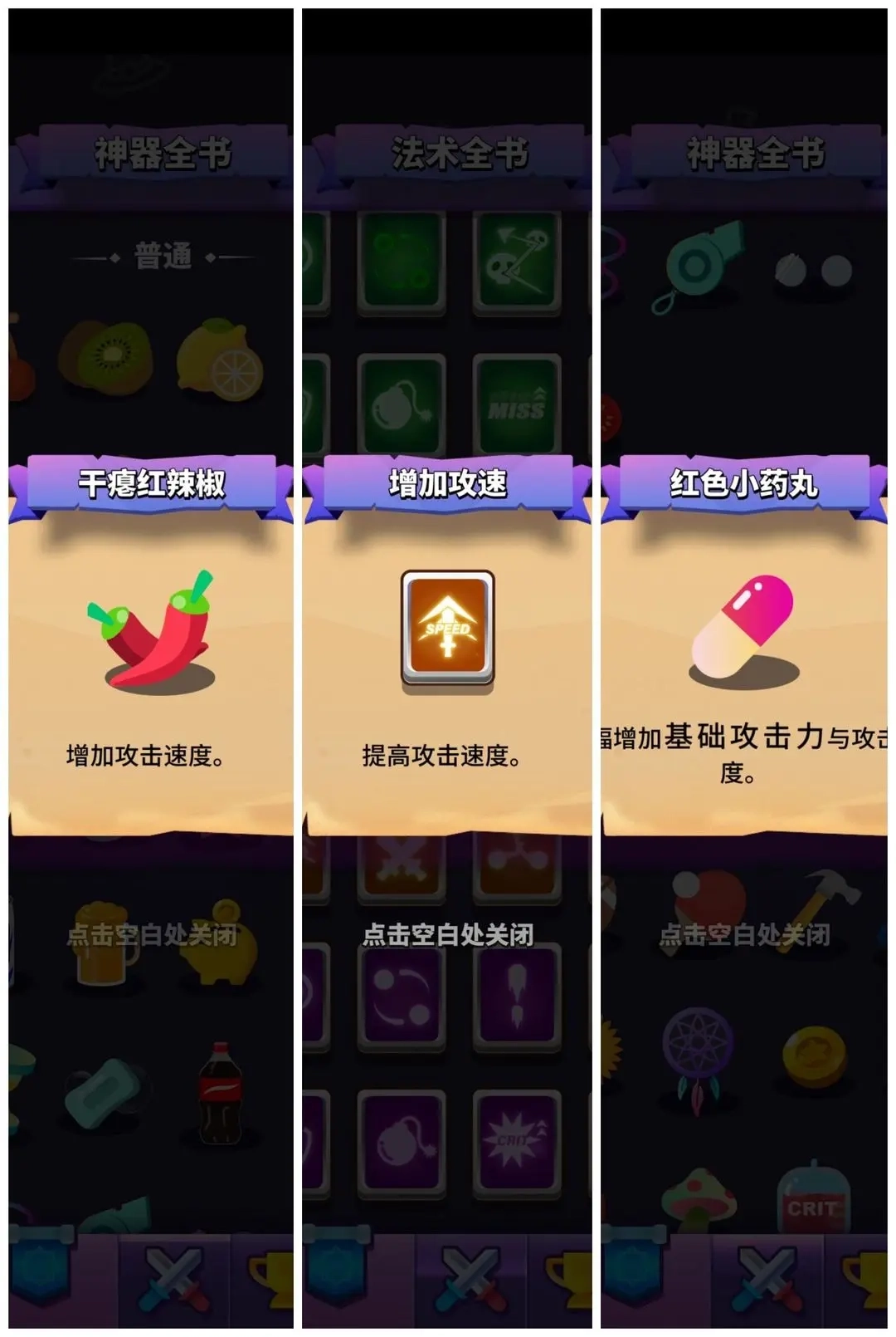 其实攻击速度没什么好说的,就是让你的攻击由哒哒 哒哒 哒哒变成了木大木大木大木大。打boss的时候增加秒伤。每一种增加攻速的道具拿了之后都挺明显的,而且攻速在小怪关中有一个重要的作用是更高频次的击退近战小怪。接下来让我们看看有哪些攻速道具: