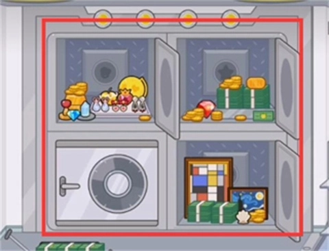 抵达银行二楼后,开启保险柜。依据图形找出钻石、红心、星星和贝壳,按照顺序逐一放入,保险柜便会开启,里面藏有诸多宝物。