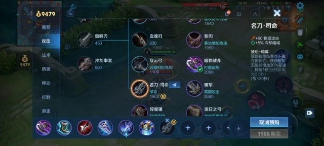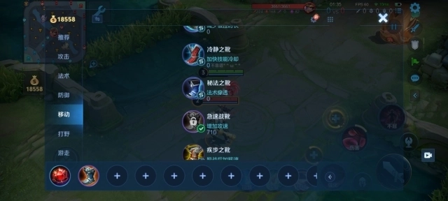 出完铁剑后我们将其升级为陨星,由于我们带的百穿铭文提供了10%的移速加成,并且在四级之前我们的转线支援能力较弱,所以鞋子先不用着急。
