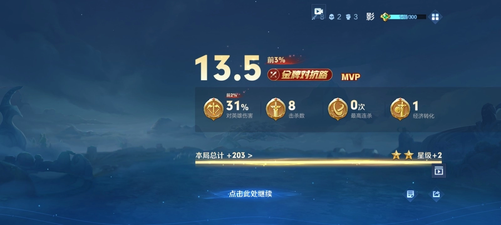 目标较近时,影进入近战状态,普攻会快速对敌人造成3次伤害,共造成 110%物理伤害。