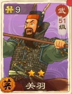 关羽:游戏前期,可将关羽作为主力进行培养。关羽一旦培养起来,伤害相当可观,无论是攻城还是通过沙盘演武,都完全足够。首充赠送的宝物赤兔马,与关羽极为适配。在前期,即便搭配一些散装宝物,关羽也较易成型,而且在选择主将技时,不会与其他两个位置产生冲突,特别适合在前期过渡阶段培养。关羽的基础天赋,能让主将技【青龙】直接斩落敌方武将,在对战全才类角色时,效果极佳。