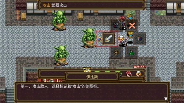 1. 第一步,选取标有“攻击”字样的剑形图标。借助该指令,你能够对武器射程范围内的敌人发起攻击,不过射程之外的敌人则无法攻击到。