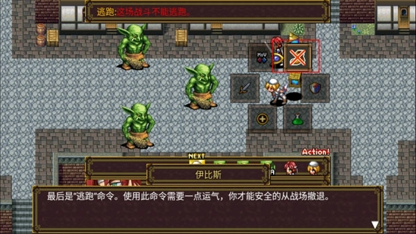 6、最后是“逃跑”指令。运用此指令得碰点运气,方能平安地从战场撤离。需谨记,有些怪物,比如boss,是逃避不了的。