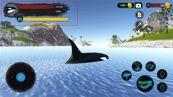 2、操控虎鲸行动可通过向左移动摇杆按钮,而控制虎鲸喷水、跳跃、攻击等动作则需使用右边的摇杆按钮。