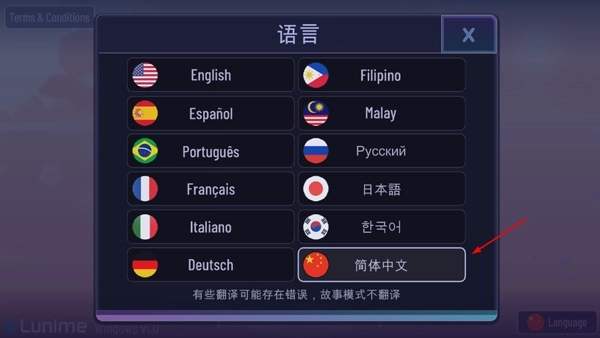 3、然后点击屏幕开始,进入游戏后就可以看到游戏语言换成简体中文了。