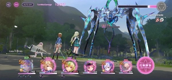 在玩法方面,绯染天空这款游戏采用策略回合制的闯关形式。玩家通过点击角色来向敌人发动攻击,当能量条蓄满时,便能释放强力技能,给予敌人大量伤害,成功消灭敌人后便可通关。此外,该游戏拥有豪华的声优阵容,总计50名出色的配音演员会为独特的角色赋予完整的声音,目的就是为玩家还原心目中的原著剧情。