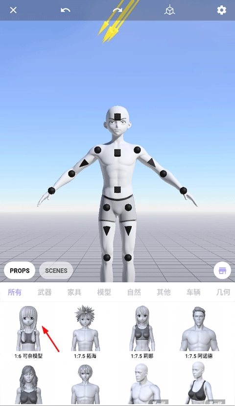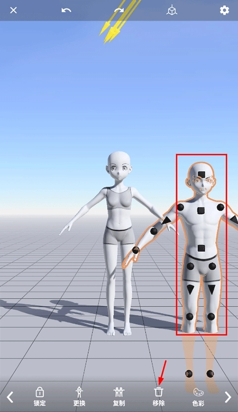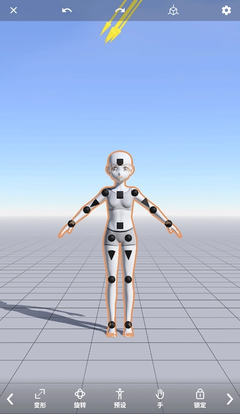 3、拉动娃娃上的控制点。借助我们的物理引擎,您能够像摆弄真实的实体娃娃那样,操控3D娃娃模型,它会自动调整至您期望的动态姿势。