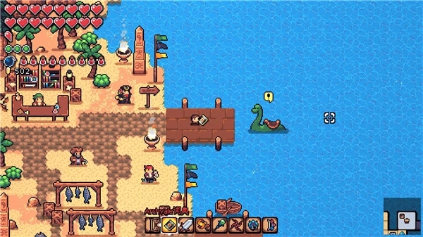 到达小镇后,右边有一个在水里的蛇颈龙,给她10个活藤蔓当午饭会带你去一个新的地图(暗礁边缘),暂时不着急去