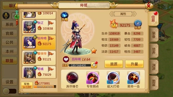 答 在将领面板可以查看全部将领的基础属性,点击【生命】、【韧性】、【破击】等文字即可查看该属性的作用。