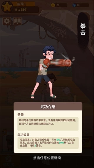 1、在本站安装好我不是废柴后,打开进入游戏,点击底部的“拳头”开始战斗。