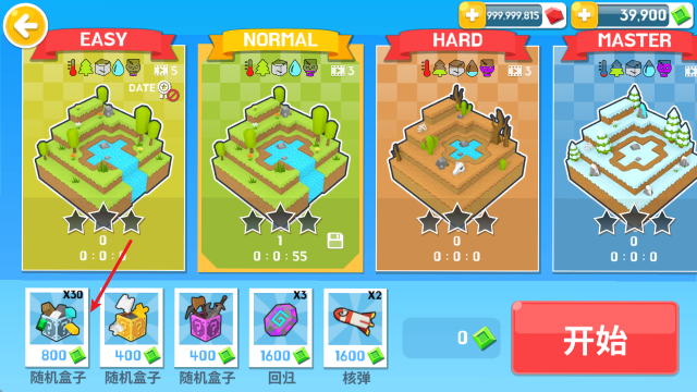 开始游戏前,我们可以自由挑选不同难度来发起挑战,还能选择获取一些开局时的助力。