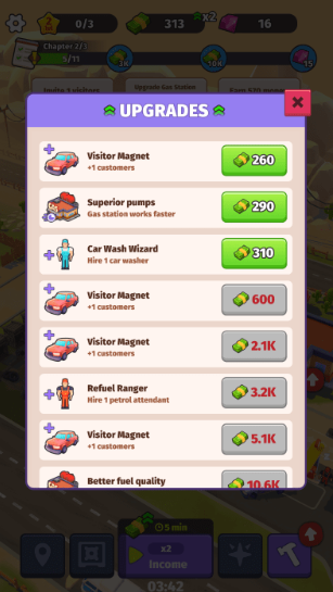 在这里可以获取更多游戏道具,解锁并升级全新设备后,还能解锁更多加油站相关内容。