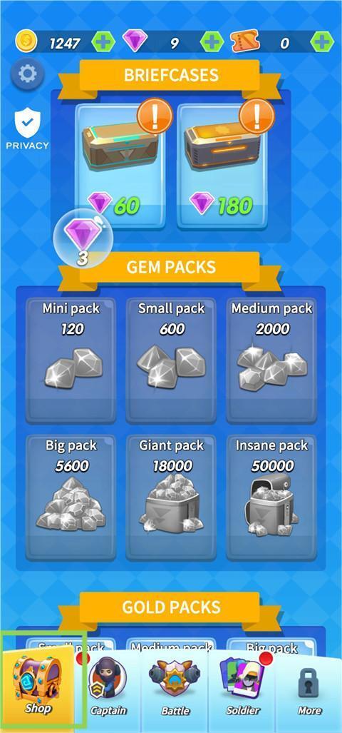 4、Shop界面进行砖石的获取。
