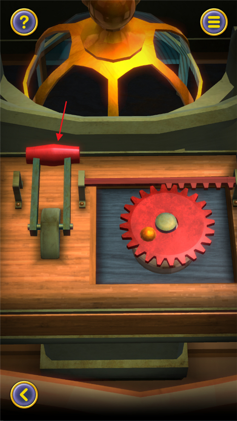 第一关刚开始的几个步骤会有提示,我们这里就直接讲没有提示的部分:转动齿轮之后,再拉动旁边的操纵杆。