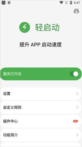 打开轻启动,首页中开启服务