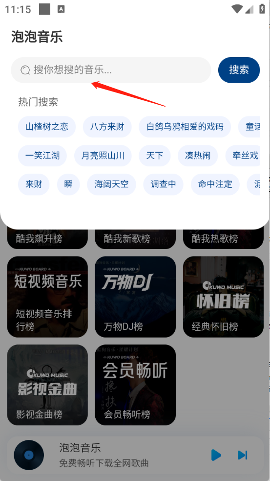 泡泡音乐是专为音乐爱好者打造的听歌利器,这里汇聚了海量音乐资源,无论是当下热门新歌还是经典怀旧老歌应有尽有。每首收录的音乐都经过精心筛选,涵盖多元风格与详细分类,能为你带来专属且独特的听歌体验。此外,它还支持高清音效播放,全程无杂音干扰,你想听的歌曲在这里都能找到。