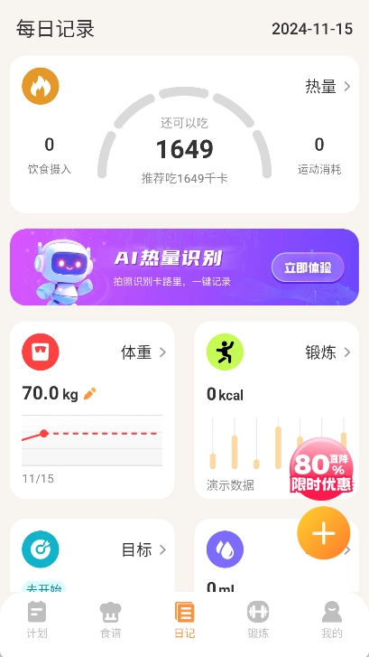 完成身体测评后,我们就能进入首页开启自己的轻断食体验了。