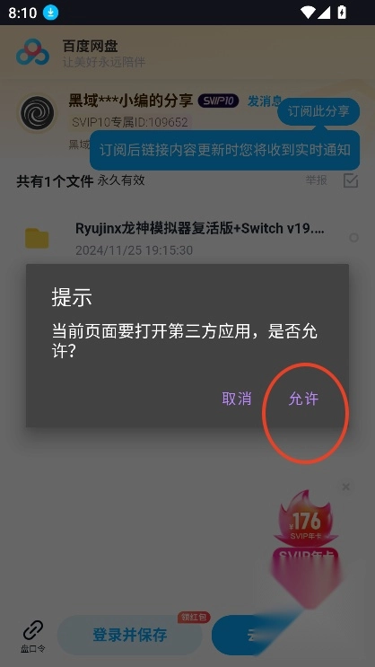 点击,即可跳转到第三方网盘进行,点击允许即可