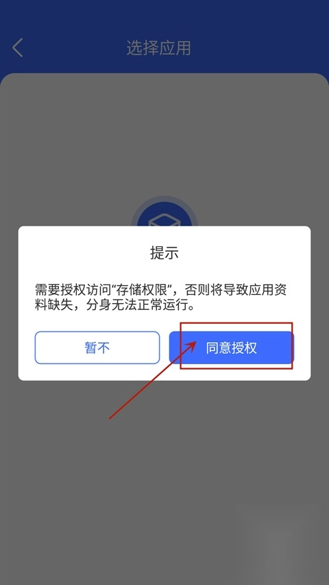 此时,系统会请求获取您的“存储权限”,请点击“同意授权”来继续后续操作。