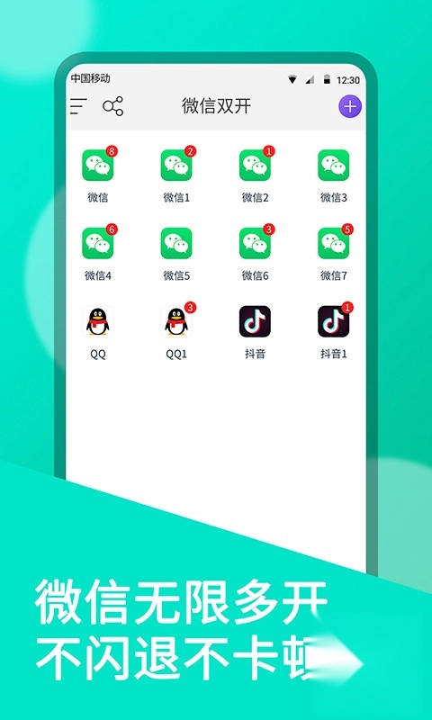 - 自定义消息提醒:多个分身可同时在线,消息提醒无延迟,还支持图标自定义。