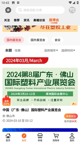 进入展博会页面,就能看到国内外各个国家和地区的塑料行业展博会信息。