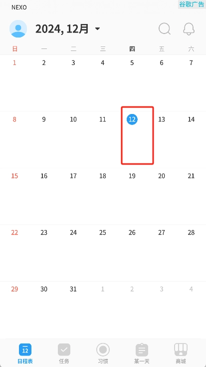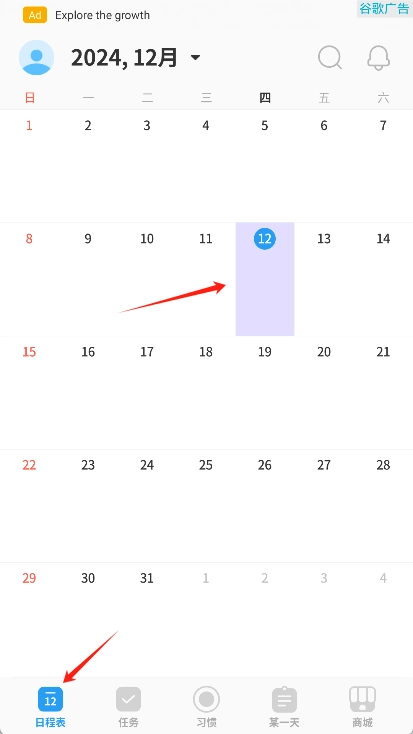 打开软件后进入日程表界面,接着点击带有背景颜色的日期。